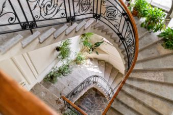 Подъём — по винтовой мраморной лестнице, одна из немногих в городе, сохранившихся в первозданном виде.