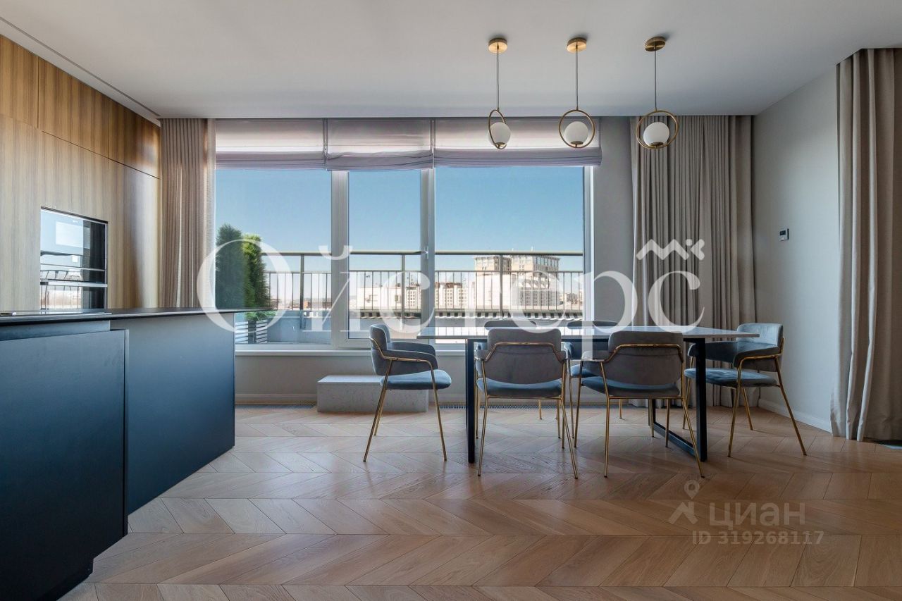 В квартире выполнен эксклюзивный дизайнерский ремонт с использованием натуральных материалов и мебели от премиальных брендов. На полу — натуральный паркет. Во всех комнатах установлены кондиционеры.