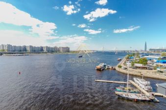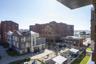Уникальная планировка: просторная кухня-гостиная 37 м² с присоединённой лоджией залита светом. Кухонная зона и зона отдыха грамотно зонированы, а вид на воду становится частью интерьера.