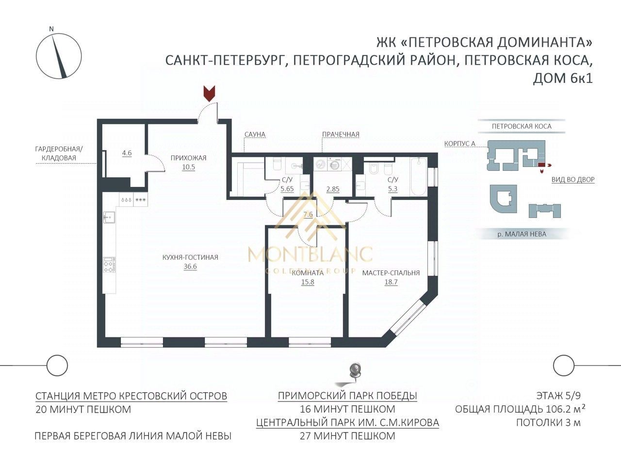 В шаговой доступности — школы, детские сады, рестораны и лучшие парки Крестовского острова.