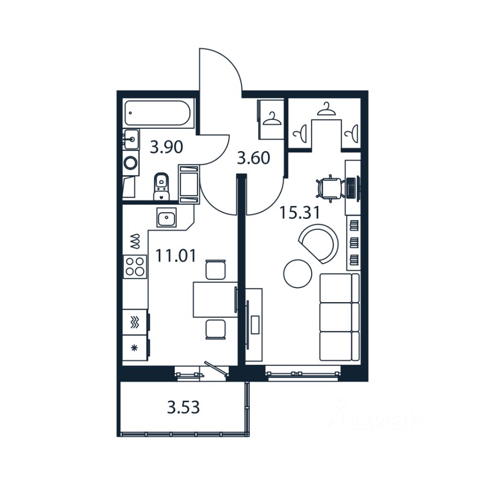 Прямая продажа от застройщика! Готовая Однокомнатная квартира 33.4 кв.м с кухней 11.01 кв.м с предчистовой отделкой на 5 этаже в сданном ЖК "Полис Лаврики".