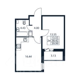 Прямая продажа от застройщика! Готовая Евро-двушка 37.9 кв.м с кухней 16.44 кв.м с предчистовой отделкой на 8 этаже в сданном ЖК "Полис Лаврики".