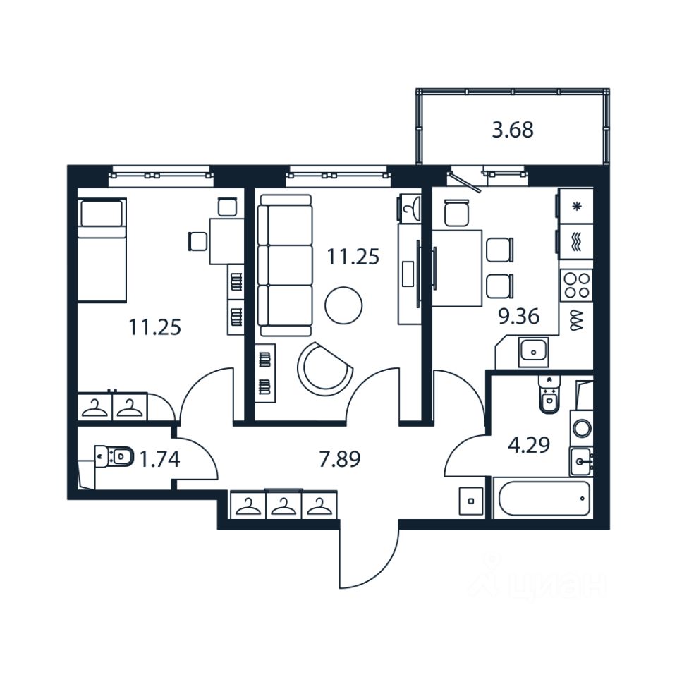 Прямая продажа от застройщика! Готовая Двухкомнатная квартира 44.8 кв.м с кухней 9.36 кв.м с предчистовой отделкой на 1 этаже в сданном ЖК "Полис Лаврики".