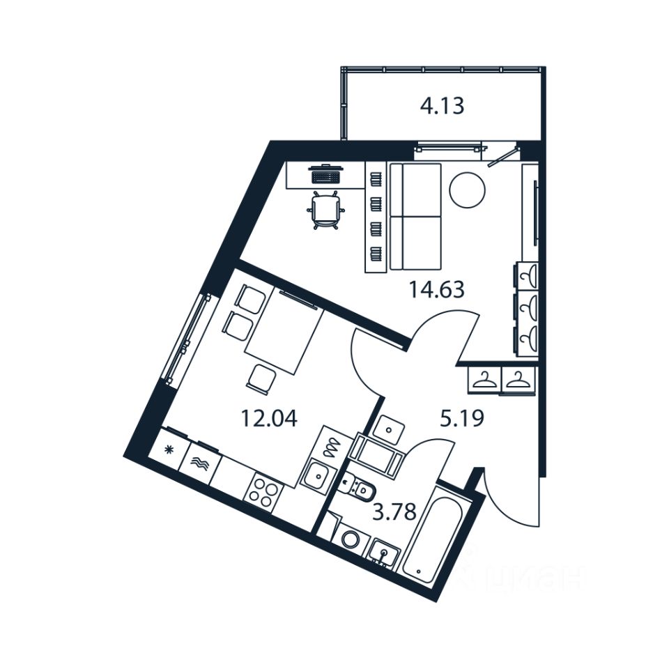 Прямая продажа от застройщика! Готовая Однокомнатная квартира 35.1 кв.м с кухней 12.04 кв.м с чистовой отделкой на 3 этаже в сданном ЖК "Полис Лаврики".