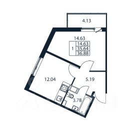 Прямая продажа от застройщика! Готовая Однокомнатная квартира 35.2 кв.м с кухней 12.04 кв.м с чистовой отделкой на 4 этаже в сданном ЖК "Полис Лаврики".