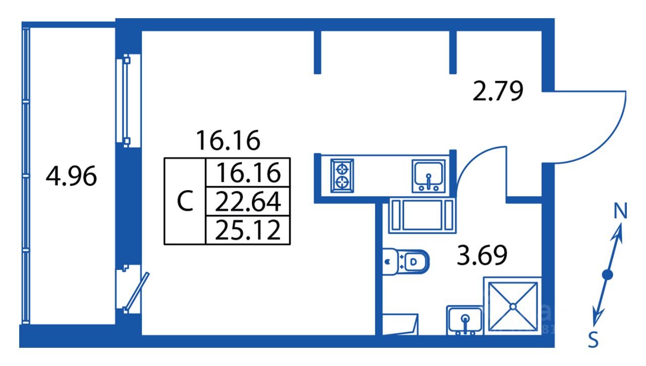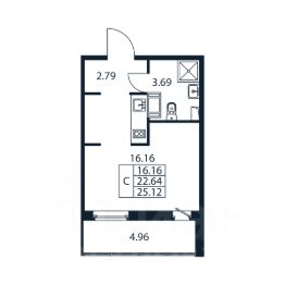 Прямая продажа от застройщика! Готовая Студия 22.4 кв.м с предчистовой отделкой на 12 этаже в сданном ЖК "Полис Лаврики".