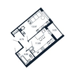 Прямая продажа от застройщика! Готовая Однокомнатная квартира 35 кв.м с кухней 11.69 кв.м с предчистовой отделкой на 2 этаже в сданном ЖК "Полис Лаврики".