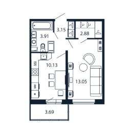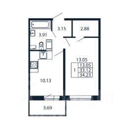 Прямая продажа от застройщика! Готовая Однокомнатная квартира 32.5 кв.м с кухней 10.13 кв.м с предчистовой отделкой на 12 этаже в сданном ЖК "Полис Лаврики".