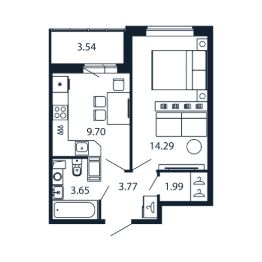 Прямая продажа от застройщика! Готовая Однокомнатная квартира 32.7 кв.м с кухней 9.7 кв.м с предчистовой отделкой на 12 этаже в сданном ЖК "Полис Лаврики".