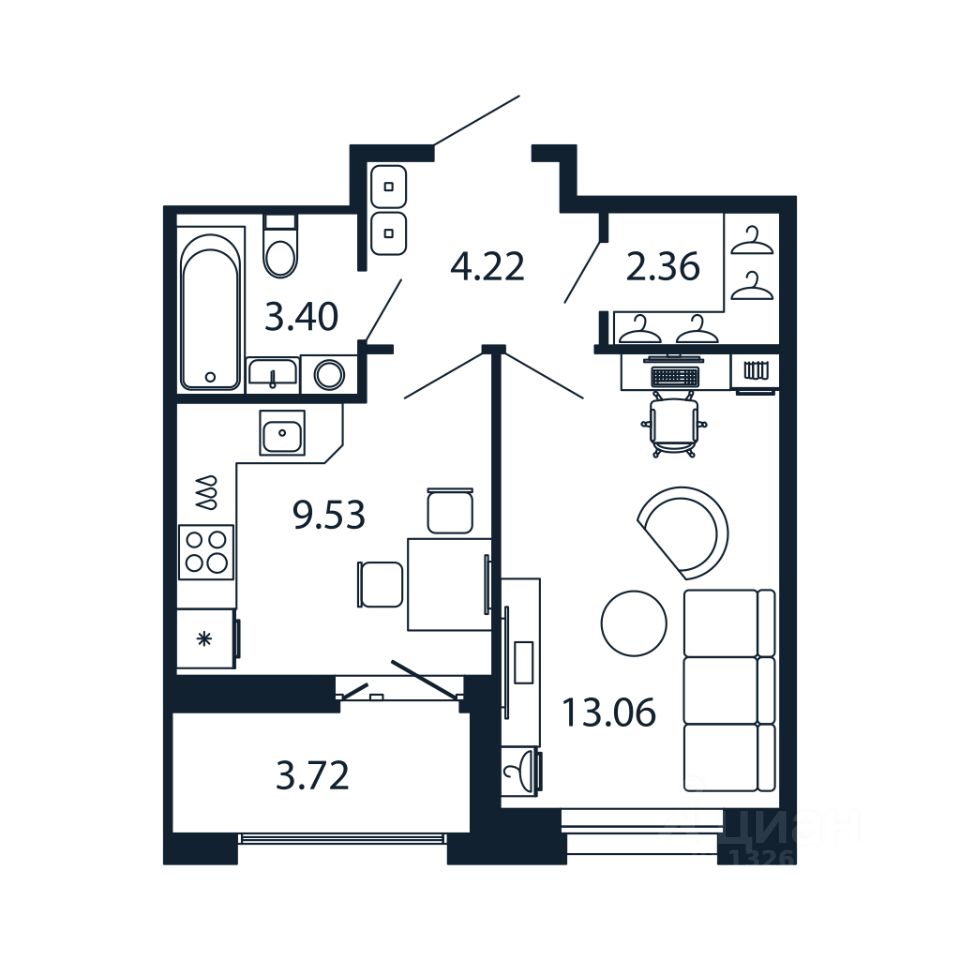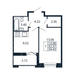 Прямая продажа от застройщика! Готовая Однокомнатная квартира 32.1 кв.м с кухней 9.53 кв.м с предчистовой отделкой на 7 этаже в сданном ЖК "Полис Новоселье".