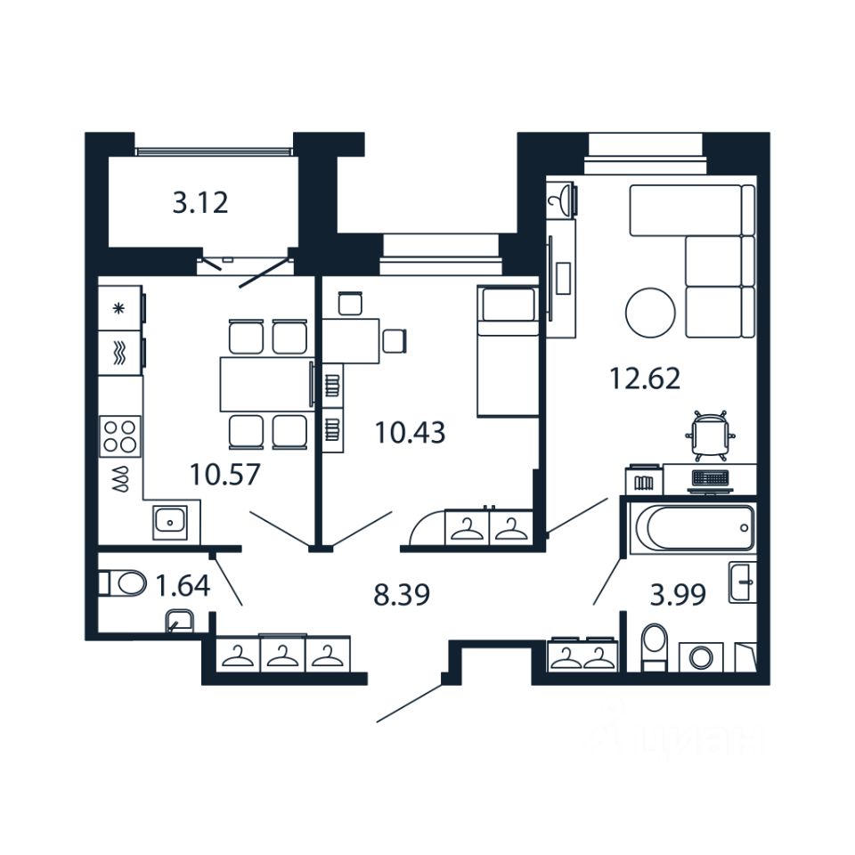 Прямая продажа от застройщика! Готовая Двухкомнатная квартира 47.2 кв.м с кухней 10.57 кв.м с предчистовой отделкой на 11 этаже в сданном ЖК "Полис Новоселье".