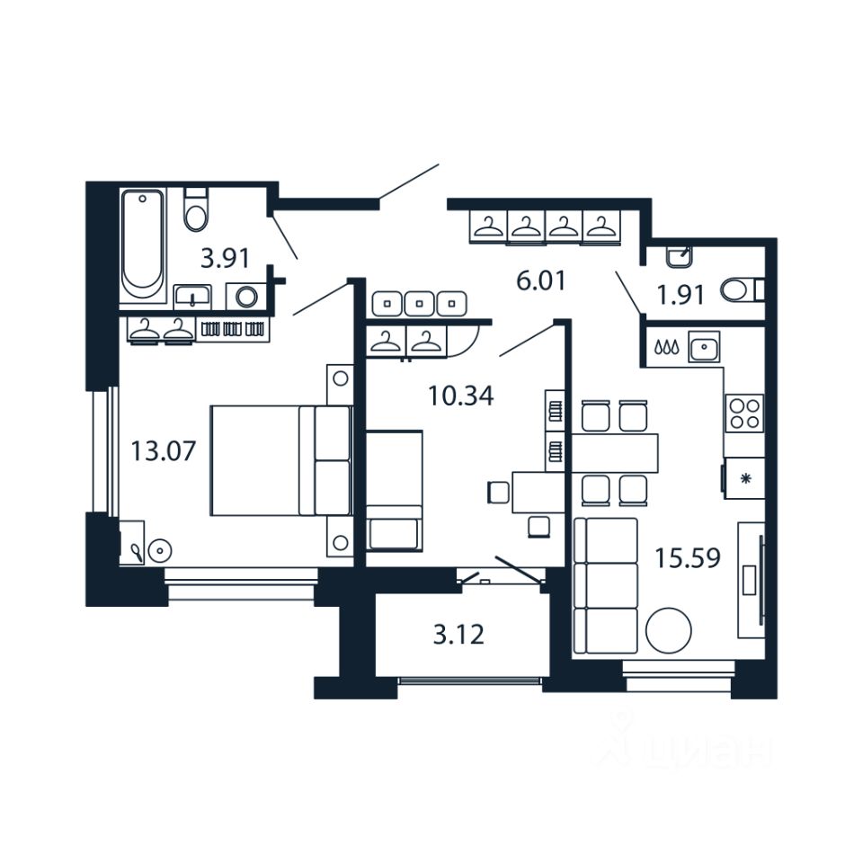 Прямая продажа от застройщика! Готовая Евро-трёшка 50.4 кв.м с кухней 15.59 кв.м с предчистовой отделкой на 12 этаже в сданном ЖК "Полис Новоселье".
