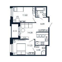 Прямая продажа от застройщика! Готовая Евро-трёшка 49.9 кв.м с кухней 14.38 кв.м с предчистовой отделкой на 2 этаже в сданном ЖК "Полис Новоселье".