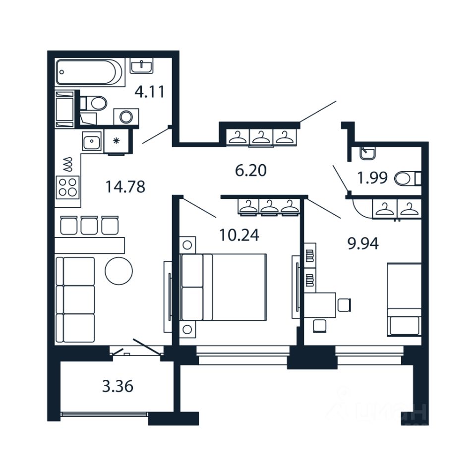 Прямая продажа от застройщика! Готовая Евро-трёшка 46.9 кв.м с кухней 14.78 кв.м с предчистовой отделкой на 12 этаже в сданном ЖК "Полис Новоселье".