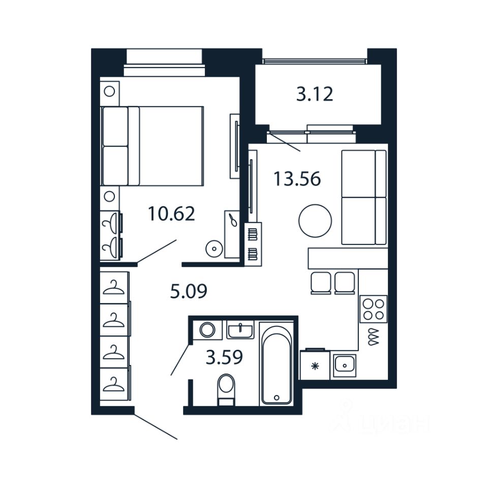 Прямая продажа от застройщика! Готовая Евро-двушка 32.5 кв.м с кухней 13.56 кв.м с предчистовой отделкой на 2 этаже в сданном ЖК "Полис Новоселье".