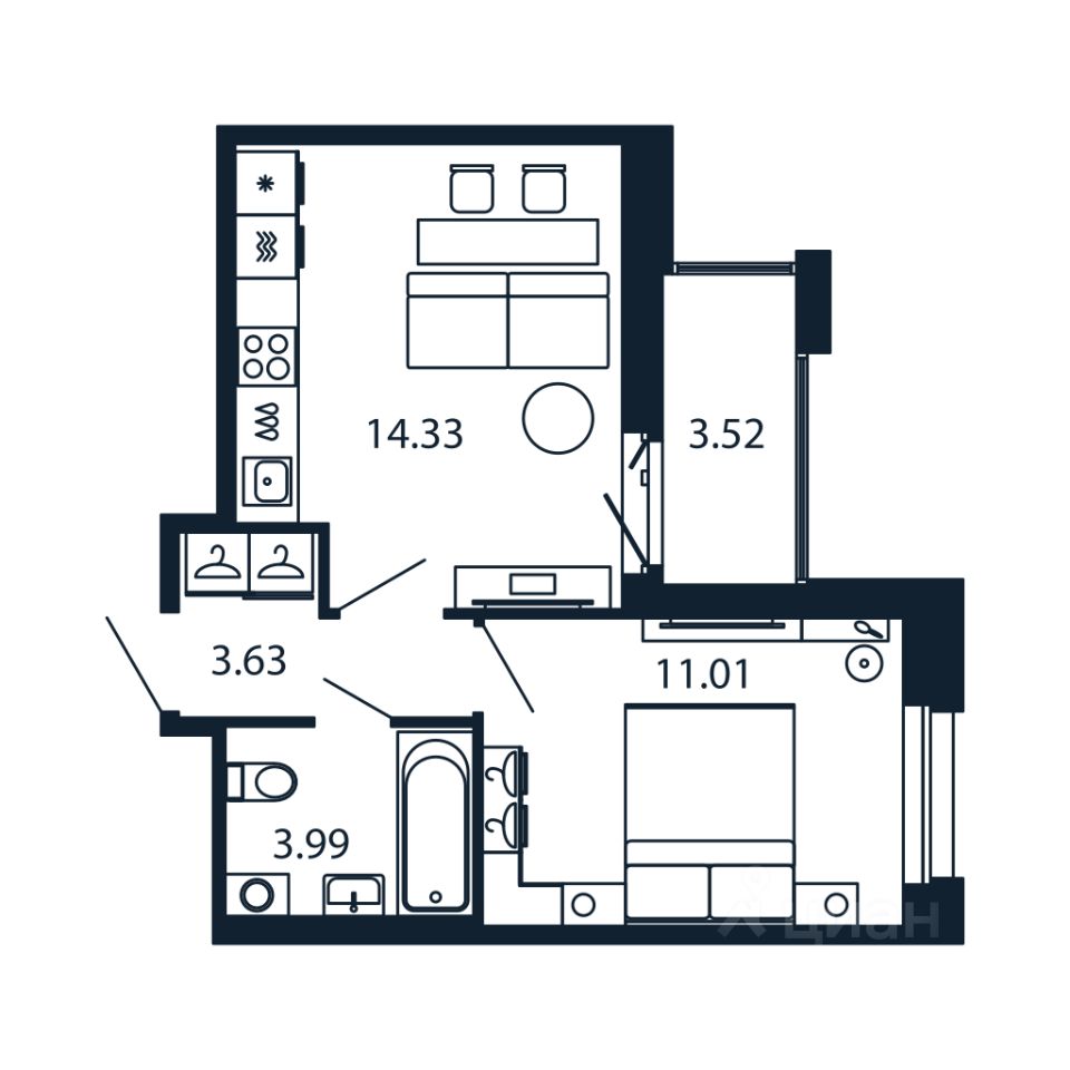 Прямая продажа от застройщика! Готовая Евро-двушка 32.7 кв.м с кухней 14.33 кв.м с предчистовой отделкой на 11 этаже в сданном ЖК "Полис Новоселье".
