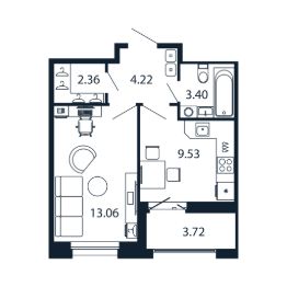 Прямая продажа от застройщика! Готовая Однокомнатная квартира 32.4 кв.м с кухней 9.53 кв.м с предчистовой отделкой на 7 этаже в сданном ЖК "Полис Новоселье".