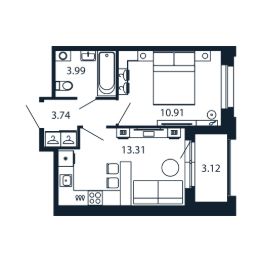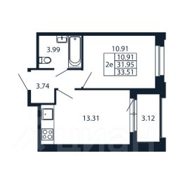 Прямая продажа от застройщика! Готовая Евро-двушка 31.7 кв.м с кухней 13.31 кв.м с предчистовой отделкой на 5 этаже в сданном ЖК "Полис Новоселье".