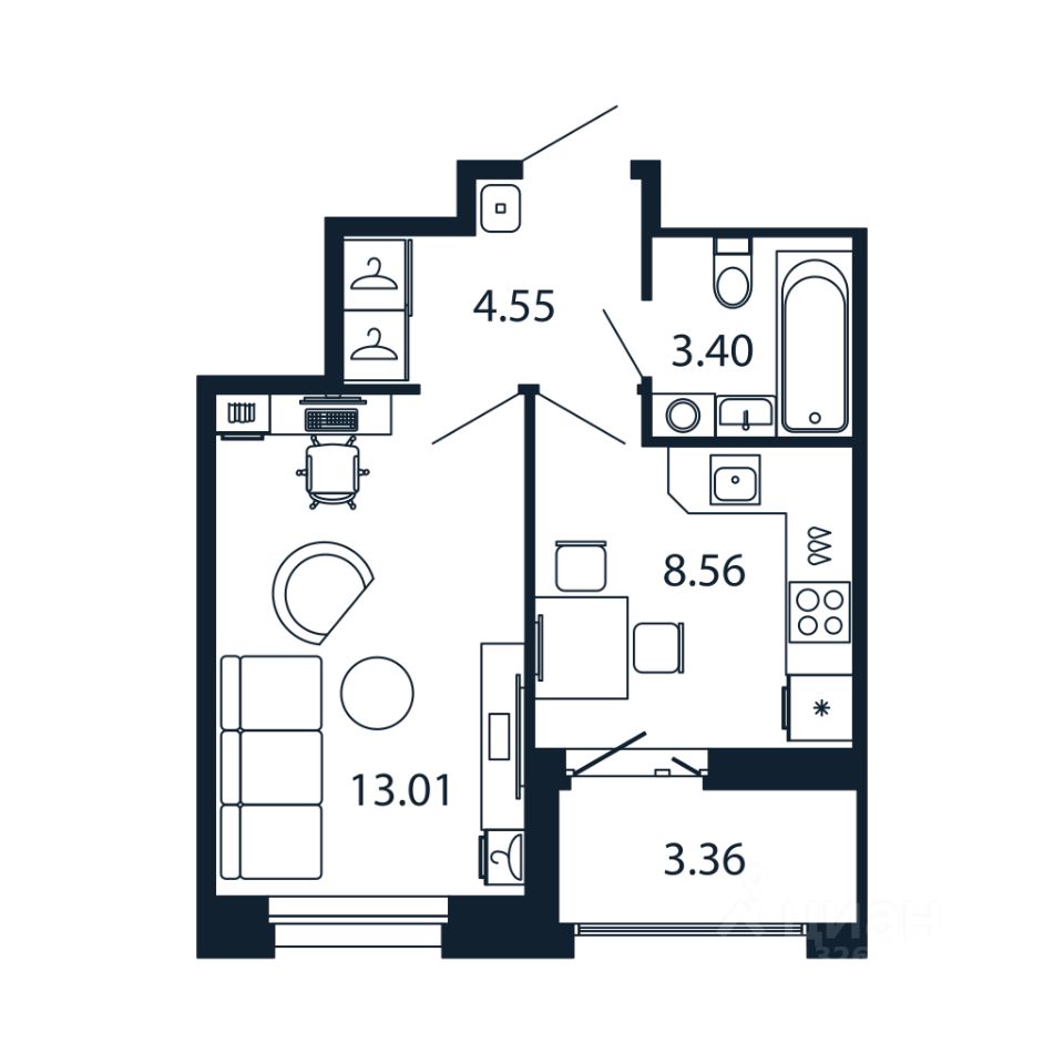 Прямая продажа от застройщика! Готовая Однокомнатная квартира 29 кв.м с кухней 8.56 кв.м с предчистовой отделкой на 8 этаже в сданном ЖК "Полис Новоселье".