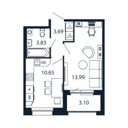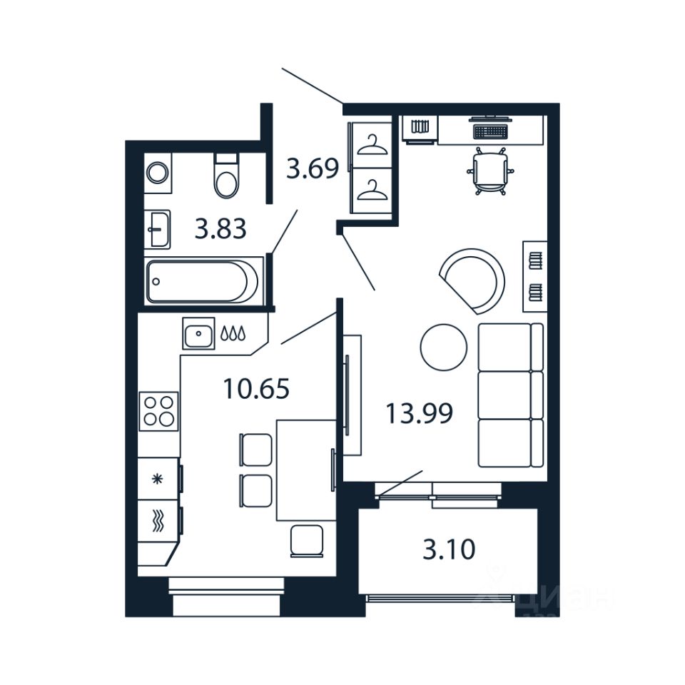 Прямая продажа от застройщика! Готовая Однокомнатная квартира 31.7 кв.м с кухней 10.65 кв.м с предчистовой отделкой на 2 этаже в сданном ЖК "Полис Новоселье".