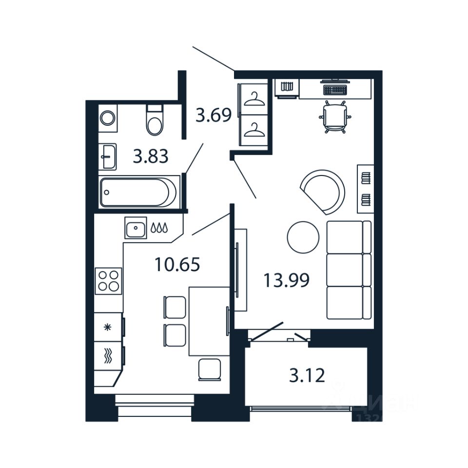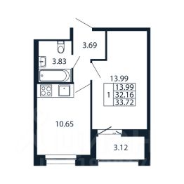 Прямая продажа от застройщика! Готовая Однокомнатная квартира 32 кв.м с кухней 10.65 кв.м с предчистовой отделкой на 10 этаже в сданном ЖК "Полис Новоселье".