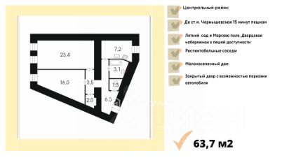 Общая площадь 63,7 м2 и своя отдельная кладовая!