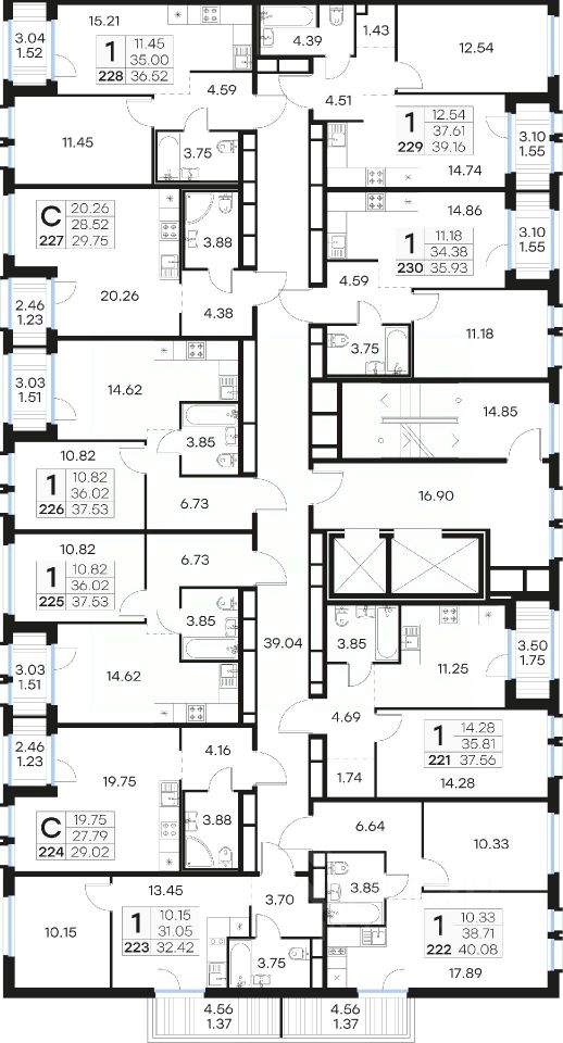 Продается 1-комн. квартира на 10-м этаже в проекте комфорт-класса GloraX Парголово. Общая площадь лота составляет 37,56 кв. м, из которых 14,28 кв. м отведено под жилую и 11,25 кв. м под кухонную зону. Номер квартиры - 221.