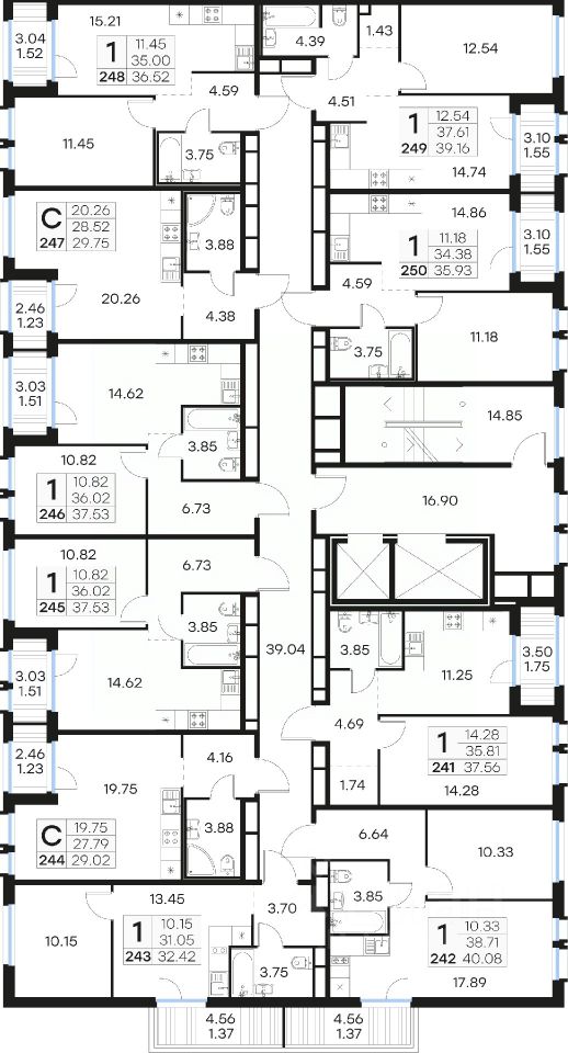 Продается 1-комн. квартира на 12-м этаже в проекте комфорт-класса GloraX Парголово. Общая площадь лота составляет 35,93 кв. м, из которых 11,18 кв. м отведено под жилую и 14,86 кв. м под кухонную зону. Номер квартиры - 250.