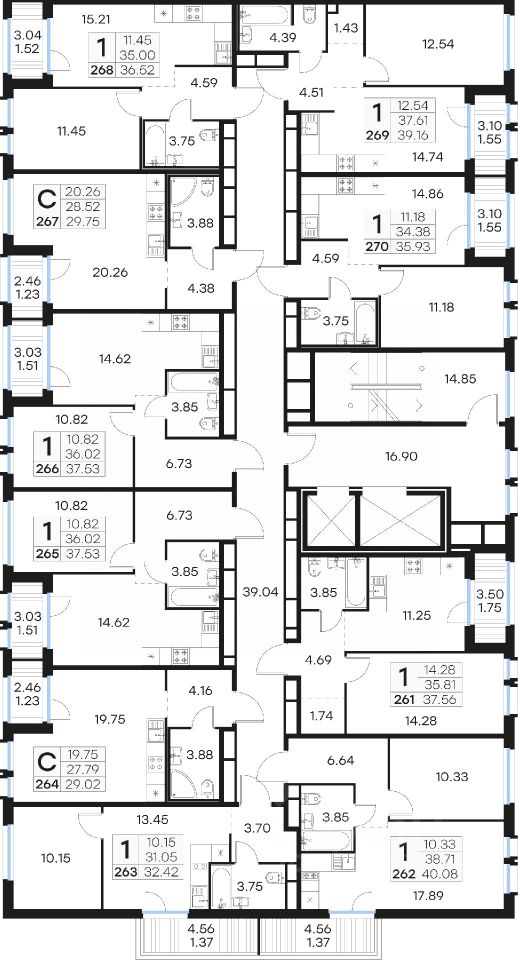 Продается 1-комн. квартира  на 14-м этаже в проекте комфорт-класса GloraX Парголово. Общая площадь лота составляет 40,08 кв. м, из которых 10,33 кв. м отведено под жилую и 17,89 кв. м под кухонную зону. Номер квартиры - 262.