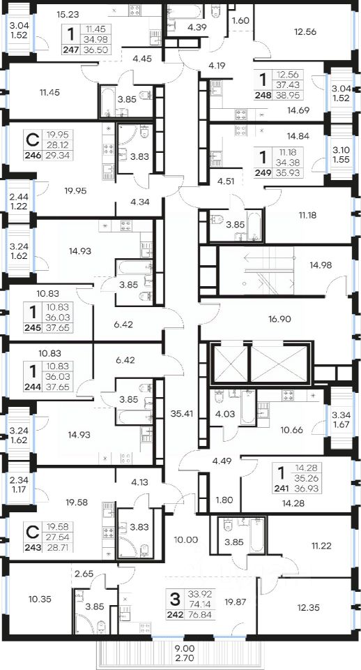 Продается 3-комн. квартира  на 12-м этаже в проекте комфорт-класса GloraX Парголово. Общая площадь лота составляет 76,84 кв. м, из которых 33,92 кв. м отведено под жилую и 19,87 кв. м под кухонную зону. Номер квартиры - 242.