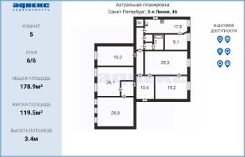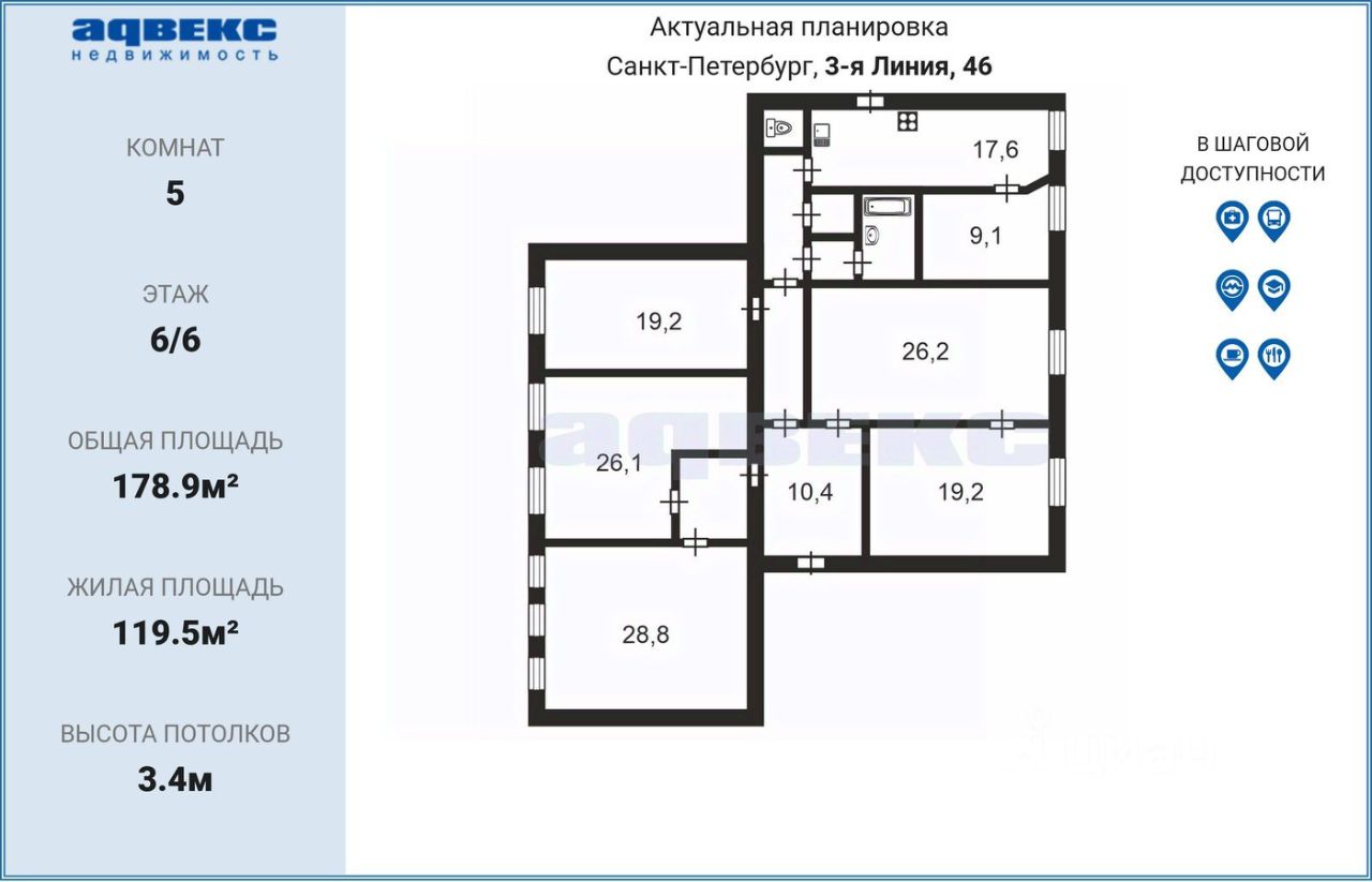 Видовая квартира , с отличным метражом и двумя входами - в самой престижной и малонаселённой части Васильевского острова. Парадный вход с улицы.