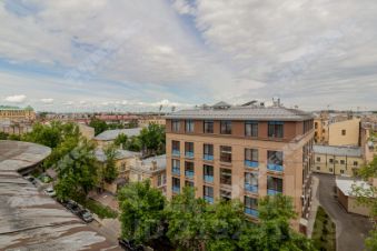 Фасад монументального здания, в котором расположена квартира, выделяется на фоне окружающей застройки.