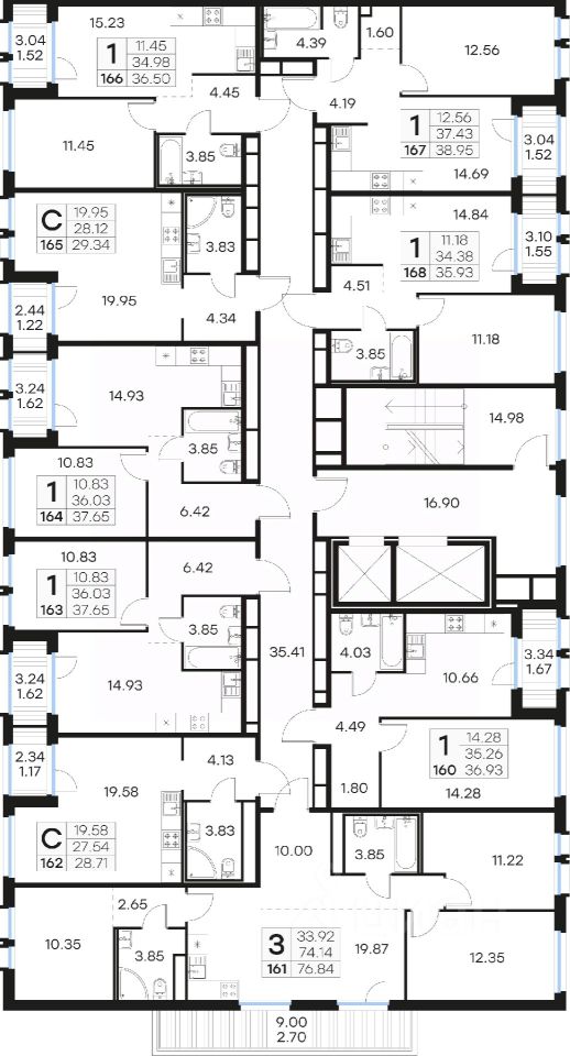 Продается 1-комн. квартира на 3-м этаже в проекте комфорт-класса GloraX Парголово. Общая площадь лота составляет 37,65 кв. м, из которых 10,83 кв. м отведено под жилую и 14,93 кв. м под кухонную зону. Номер квартиры - 164.