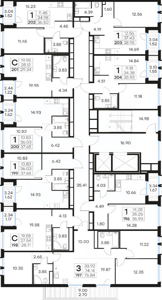 Продается 1-комн. квартира на 7-м этаже в проекте комфорт-класса GloraX Парголово. Общая площадь лота составляет 37,65 кв. м, из которых 10,83 кв. м отведено под жилую и 14,93 кв. м под кухонную зону. Номер квартиры - 199.