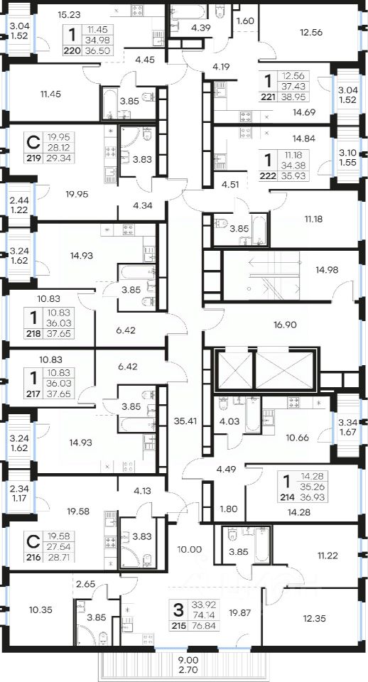 Продается квартира-студия на 9-м этаже в проекте комфорт-класса GloraX Парголово. Общая площадь лота составляет 29,34 кв. м, из которых 19,95 кв. м отведено под жилую и кв. м под кухонную зону. Номер квартиры - 219.