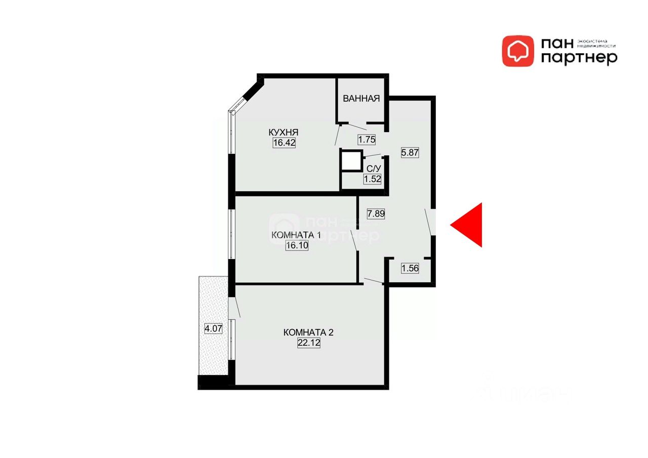 Квартира состоит из двух комнат правильной формы 22,12 и 16,10 кв.м. Большая кухня метражом 16,42 кв.м. позволяет проводить обеды и ужины всей семьей. Вместительный коридор площадью 15,32 кв.м., создает прекрасные дополнительные возможности для хранения вещей.