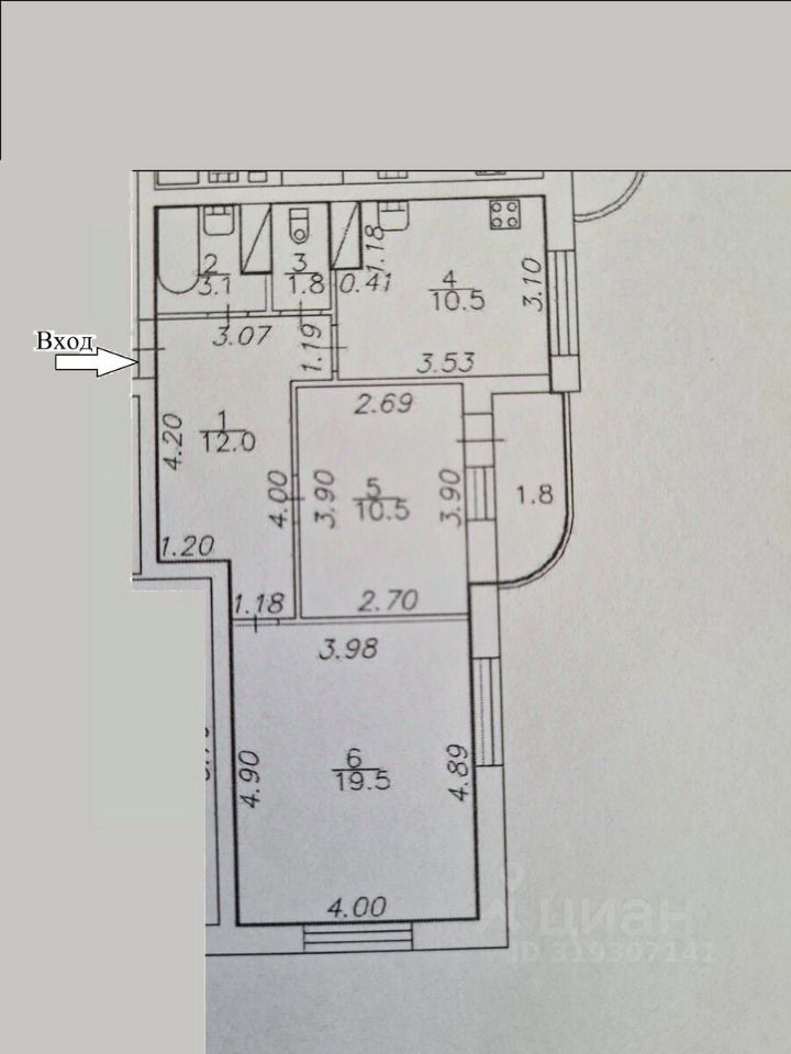 Просторная прихожая, раздельный санузел, большая комната 19,5м.кв. с двумя окнами.