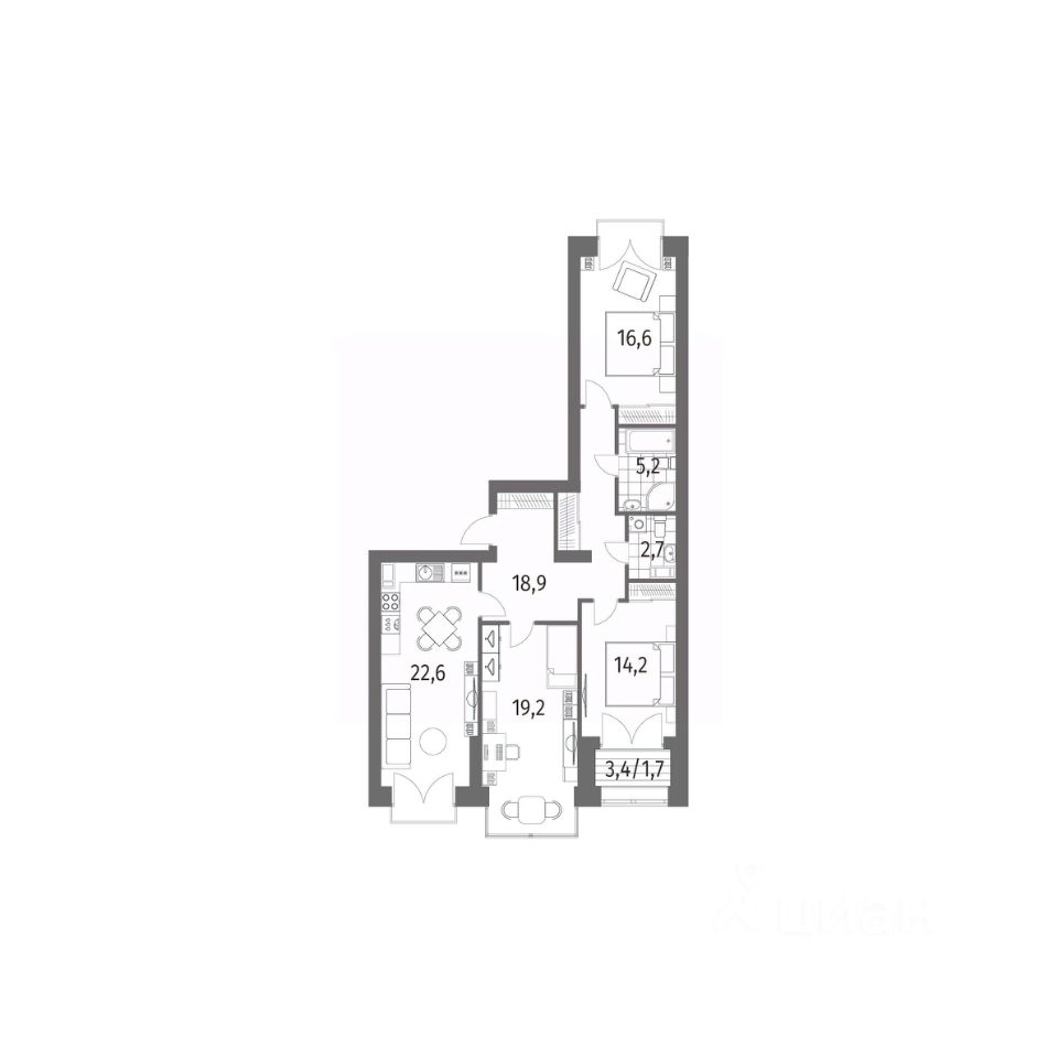 Продается квартира площадью 101.1 м²