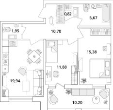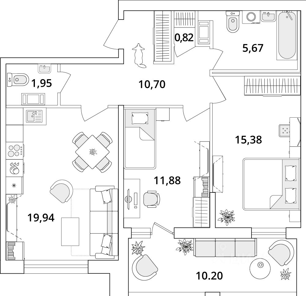 Квартира находится в 18 этажном доме, в Корпус 5-Cube на 12 этаже. Общая площадь квартиры 71,80 кв.м.