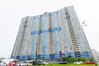 На первом этаже коммерция, фитнес клуб с плавательным бассейном, МФЦ и даже православная часовня.