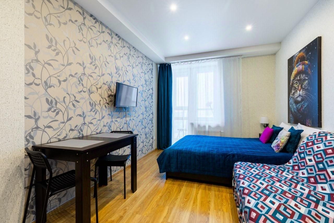 Светлая уютная студия с нетипичной планировкой - обустроенной кухней и отделенной жилой комнатой.