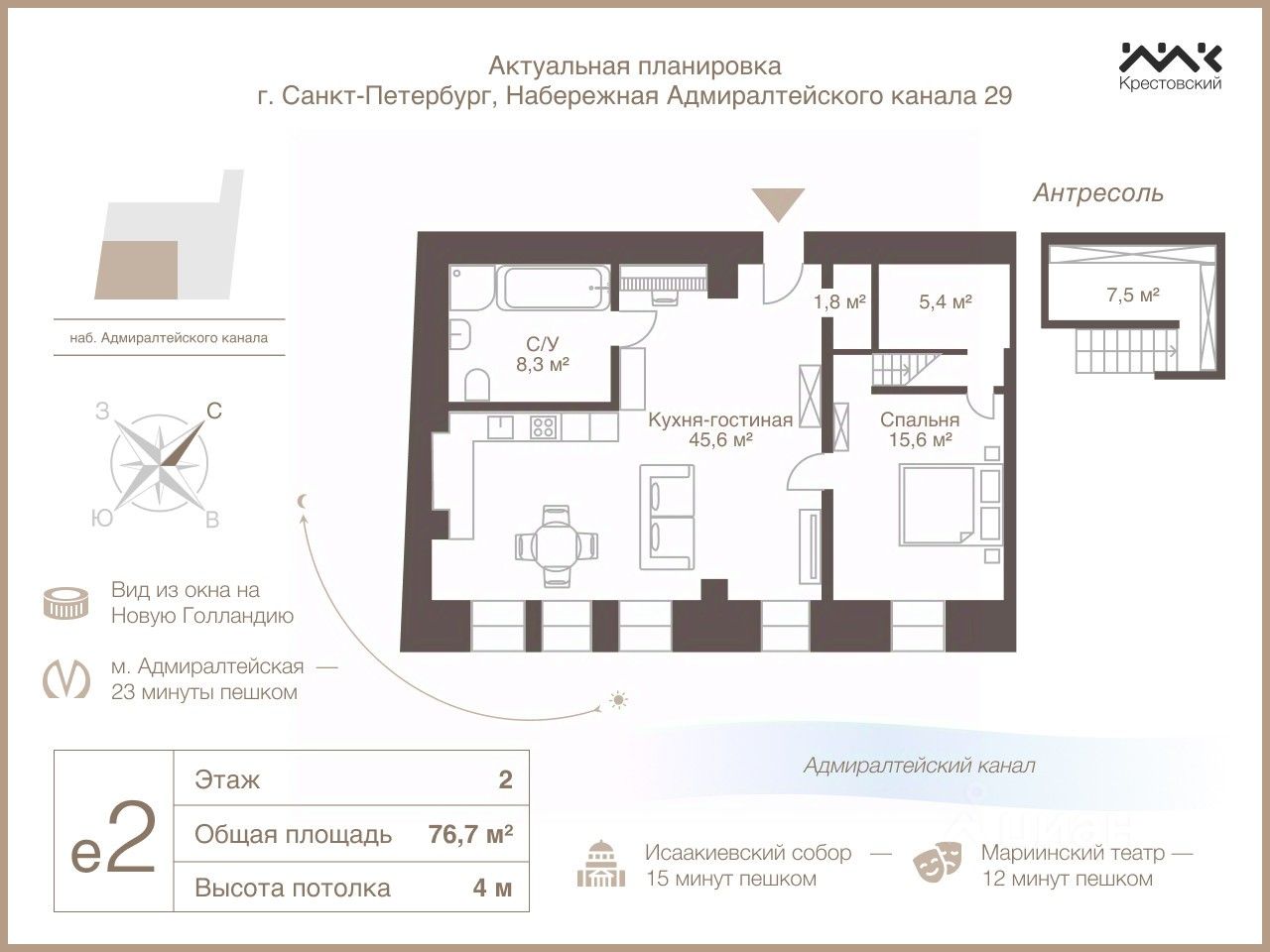 В шаговой доступности находятся Мариинский театр, Исаакиевский собор, Юсуповский дворец, набережная канала Грибоедова и тихие скверы. Это место для тех, кто чувствует город не только в его архитектуре, но и в самой его истории. Район просто создан для неспешных прогулок, уютных утренних завтраков в ресторанах и встреч с искусством.