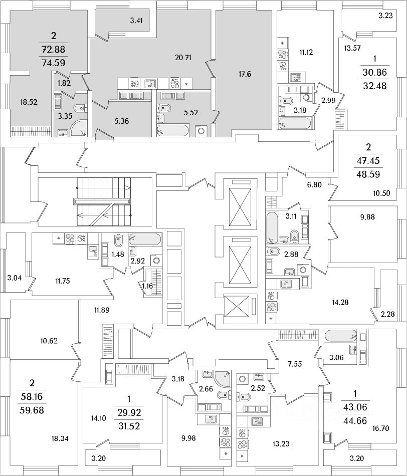 Квартира находится в 23 этажном доме, в Корпус 4 на 22 этаже. Общая площадь квартиры 74,90 кв.м.
