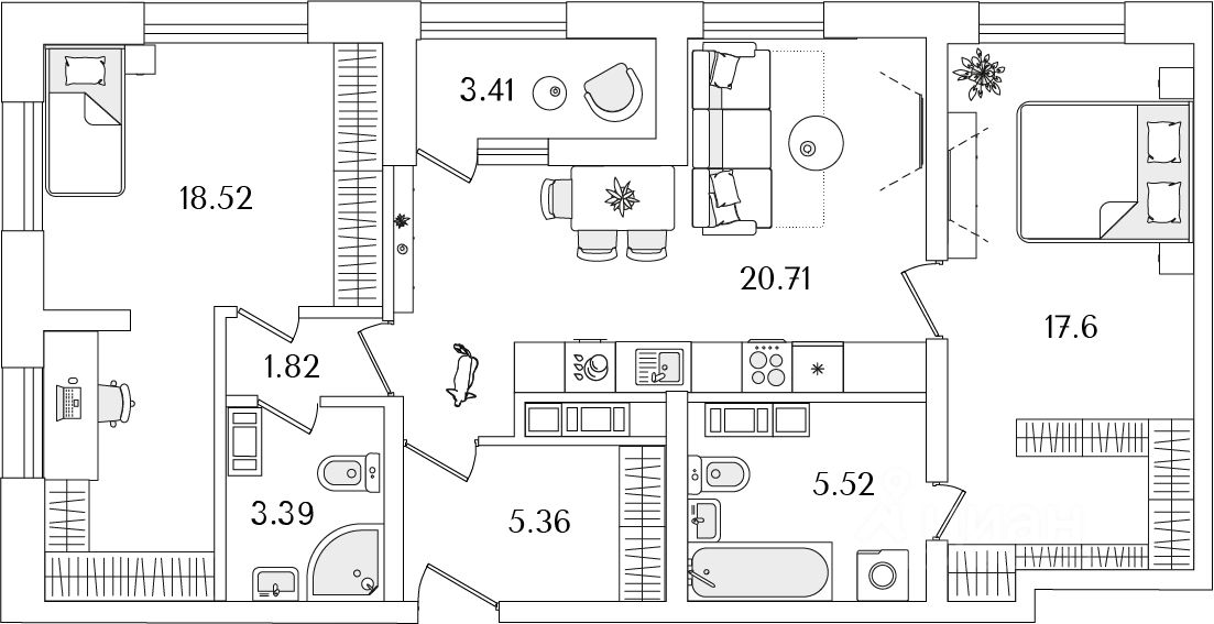Квартира находится в 23 этажном доме, в Корпус 4 на 23 этаже. Общая площадь квартиры 75,00 кв.м.