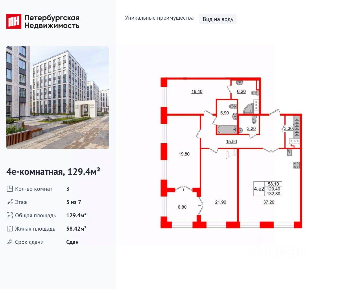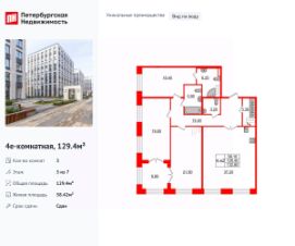 Уникальная, функциональная европланировка, большая кухня-гостиная 37.42 м², просторная прихожая 15.55 м². Общая площадь квартиры - 129.4 м², жилая 58.42 м², высота потолка 3 м.