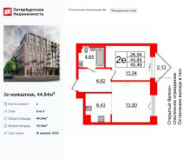 Уникальная, функциональная европланировка, большая кухня-гостиная 6.43 м², просторная прихожая 6.82 м². Общая площадь квартиры - 44.84 м², жилая 26.94 м², высота потолка 3 м.