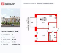 Продается просторная 1-комнатная квартира от застройщика в жилом комплексе "Империал Клаб" в уютном Василеостровском районе.