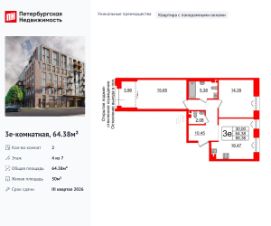 Уникальная, функциональная европланировка, большая кухня-гостиная 16.47 м², просторная прихожая 10.45 м². Общая площадь квартиры - 64.38 м², жилая 30 м², высота потолка 3 м.