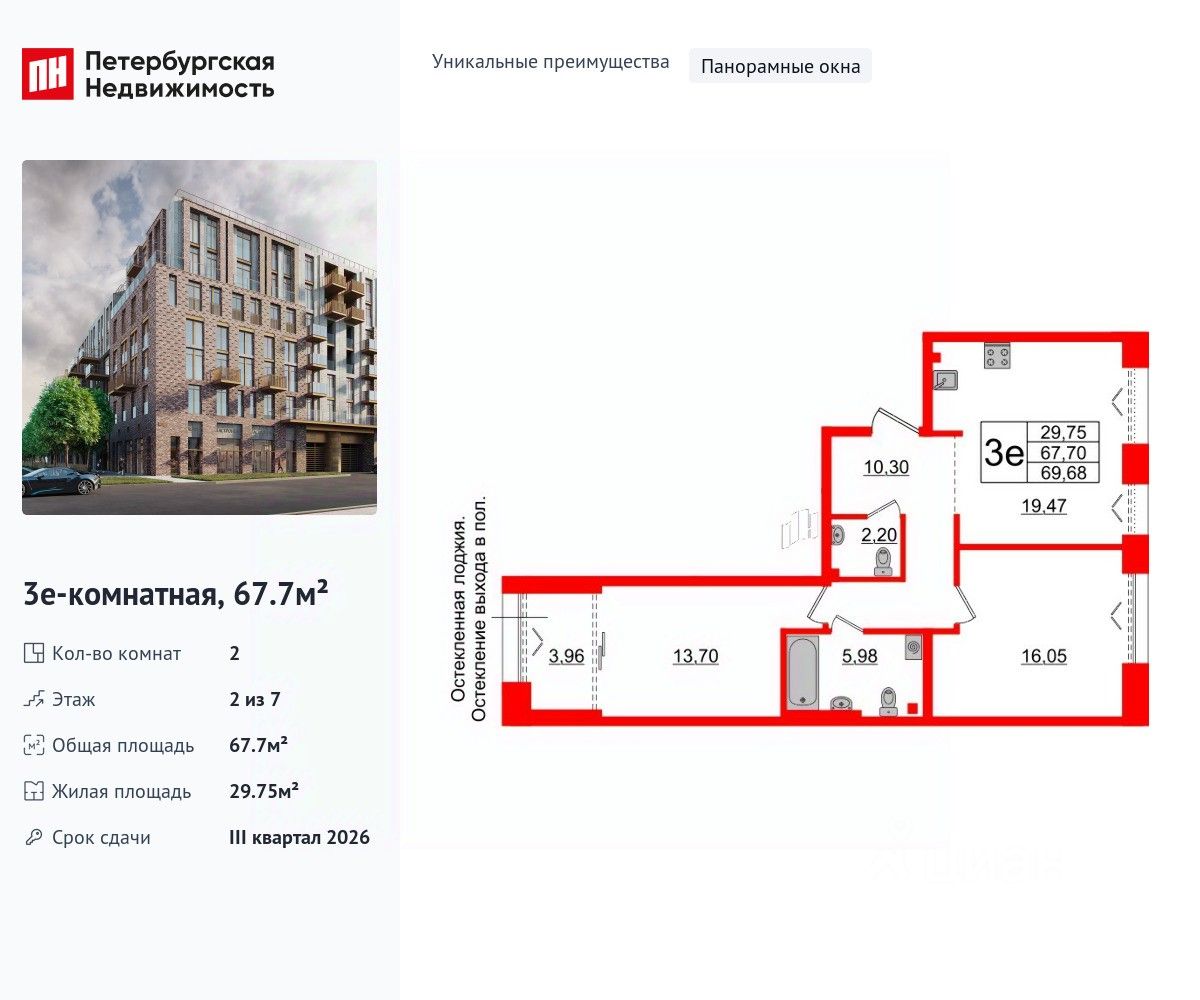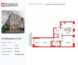 Уникальная, функциональная европланировка, большая кухня-гостиная 19.47 м², просторная прихожая 10.3 м². Общая площадь квартиры - 67.7 м², жилая 29.75 м², высота потолка 3 м.