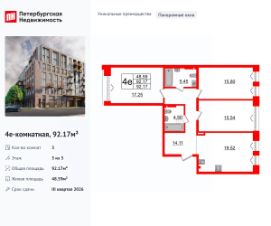 Уникальная, функциональная европланировка, большая кухня-гостиная 19.52 м², просторная прихожая 14.11 м². Общая площадь квартиры - 92.17 м², жилая 48.59 м², высота потолка 3 м.
